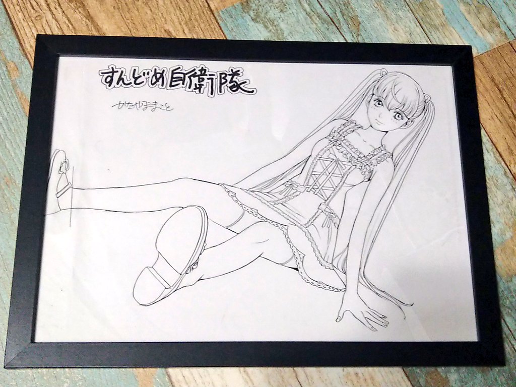 帰宅したら、かたやままこと先生(@burajon2)からサイン色紙が届きました❗凄過ぎて震えました❗(>_<) さらに「オマケ」として、すんどめ自衛隊のベビードール姿の千夏ちゃんの直筆イラストまで❗ かたやま先生、ありがとうございます❗(T_T) #かたやままこと #龍空のエイシズイラストはがき企画