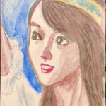 #かっきーとカウントダウン 賀喜遥香ちゃん1st写真集発売まであと 24日! 70枚連続賀喜絵、46枚目は 完成したてのベレー帽姿。油性色鉛筆主体で背景は水溶性パステル。ケント紙だとやはり波打つのが残念。 #賀喜遥香1st写真集まっさら #色鉛筆画 #乃木坂46 #N46_FA