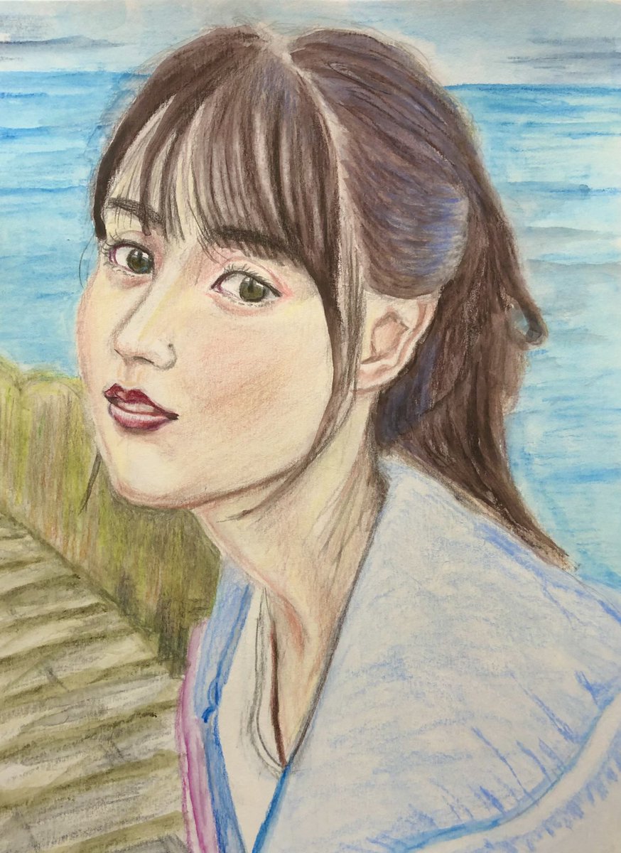 #かっきーとカウントダウン 賀喜遥香ちゃん1st写真集発売まであと 19日! 70枚連続賀喜絵、51枚目は 水辺に佇む姿を、油性水彩両方の色鉛筆重ねて描きました。 #賀喜遥香1st写真集まっさら #色鉛筆画 #乃木坂46 #N46_FA