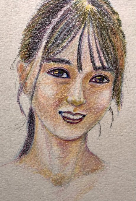 #かっきーとカウントダウン 賀喜遥香ちゃん1st写真集発売まであと ふ、2日! 70枚連続賀喜絵、68枚目は 気張って久々にA4サイズケント紙に描いた色鉛筆画。前髪をこの向きに流してるのは珍しいと思います。 #賀喜遥香1st写真集まっさら #色鉛筆画 #乃木坂46 #N46_FA