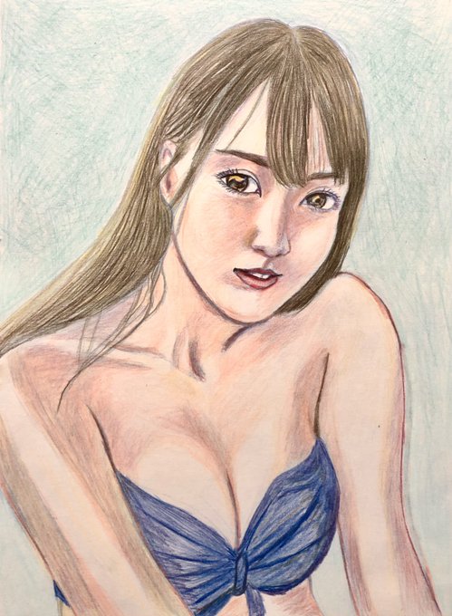 #かっきーとカウントダウン 賀喜遥香ちゃん1st写真集発売まであと なんと10日! 70枚連続賀喜絵、60枚目は ジャーン! 水着姿です😤 混色で肌を作るやり方を取り入れてます。 #賀喜遥香1st写真集まっさら #色鉛筆画 #乃木坂46 #N46_FA