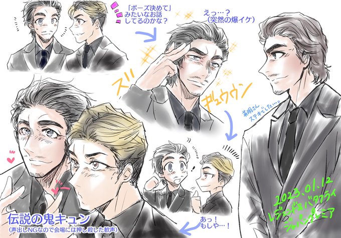 #レジェバタ #かつてないレジェバタ 2023.01.12ジャパンプレミアの感想イラスト描きました🦋 木村拓哉さんと伊藤英明さんによるW鬼キュン🫰が発射されるまでの一連の流れ、たしかこうだったような…!(メディアの方々の背中越しにチラ見え) アラフィフプリキュア非常に推します