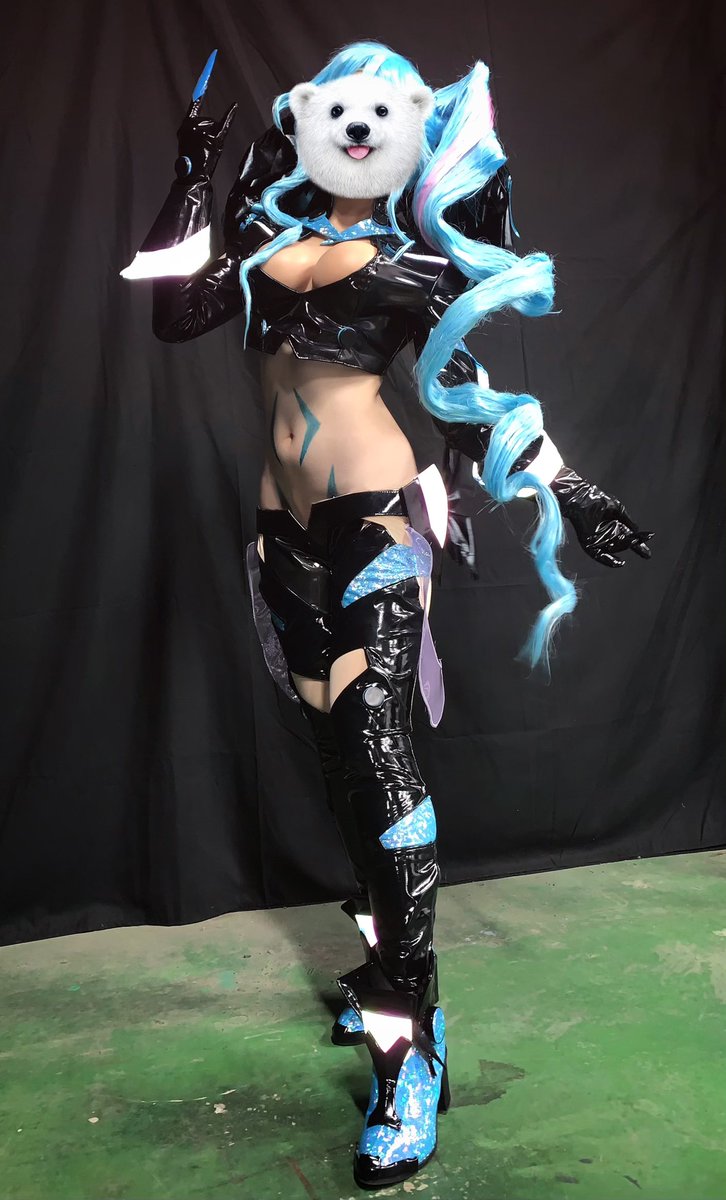 ここで進捗が途絶えた(つまりマジYABA5000%だった)わけですが無事完成しました〜!ありがとう現地〜!← しゅぞさんが衣装できたよ写真撮ってくれました✌️ オーロラリフレクタァ〜!✌️ ⚠️パンツ履いてます!!!加工で消しただけで履いてます!! #かなんぴ衣装作る #一瞬で洪水ヤミキューレあわせ