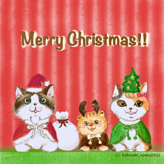 【#MerryChristmas🎄】 hohoho♪ プレゼントは届いたかにゃ? みなさまに素敵なできごとが訪れますように💫 猫サンタより🔔 #クリスマス2022 #クリスマスイラスト #みんなで楽しむTwitter展覧会 #猫の絵 #サンタの絵 #空とぶロバ出版 #かぶさきりょうこ #イベント #絵描き #香箱座り #猫サンタ