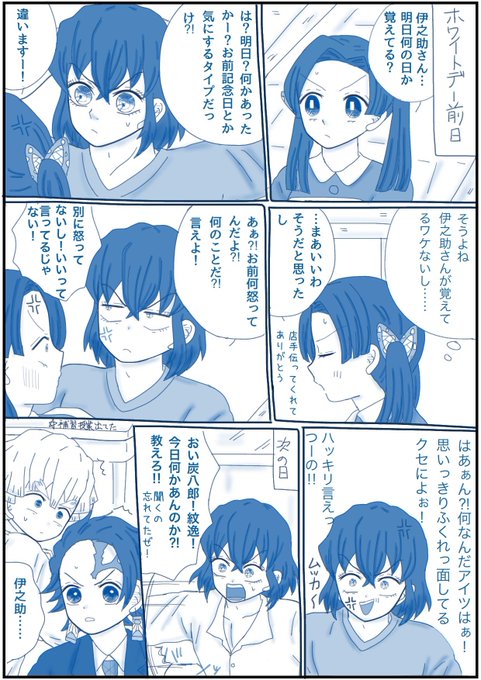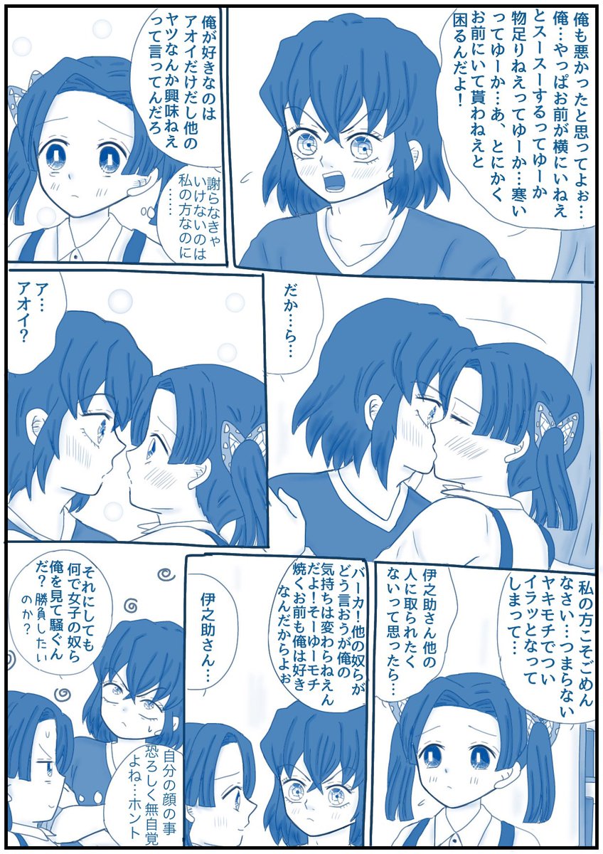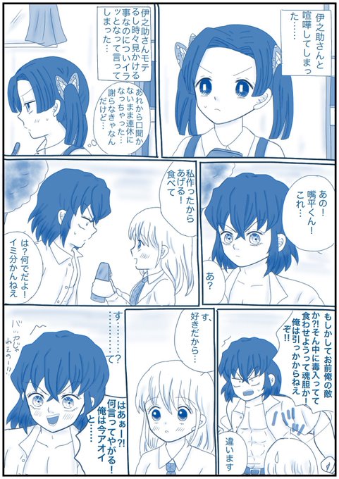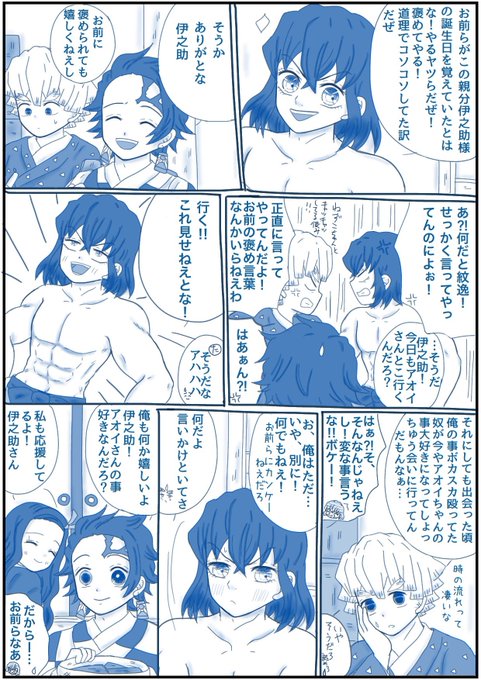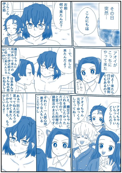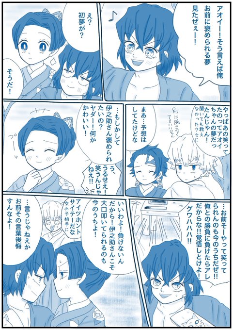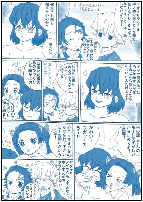 「何の話してるのよ!!」 (大正軸付き合ってる伊アオ・落書き) 👇のお題で描きました! あわあわアオちゃんw 最後違う所で感心してるたんじろ笑 #伊アオ #かまぼこ隊 twitter.com/sorasoso71/sta…