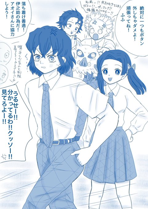 描きました! (キメ学伊アオ落書き) ちゃんと着たら着たで周りに騒がれる男🐗w ちゃんと着るのはいいことだけど別件で良く思っていない善⚡️(笑) に対して協力的なたんじろ🎴 #伊アオ #かまぼこ隊 twitter.com/sorasoso71/sta…
