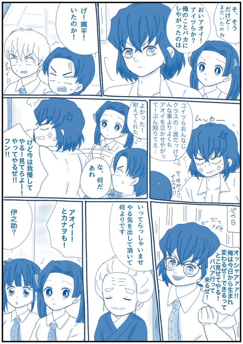 「負けてよかったと思う時もある!」 (キメ学伊アオ・落書き) イベントからの後日話。 大掃除当日のこと たんじろとぜんいつがどーなったかも描いときましたw #伊アオ #かまぼこ隊 twitter.com/sorasoso71/sta…