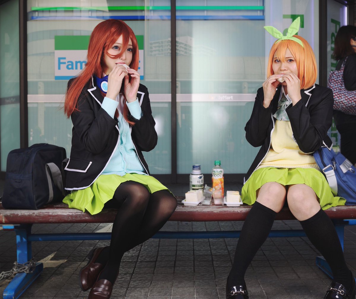 中野家の日常🍵🍊( ¨̮ )︎︎𖠚ᐝ コスプレ|五等分の花嫁 💚中野四葉 さやち@sayachomaru____ 💙中野三玖 🦋non🦋 photo📸しもじーさん@BlueAndGold1913 #かみこす #かみこすポートアイランド