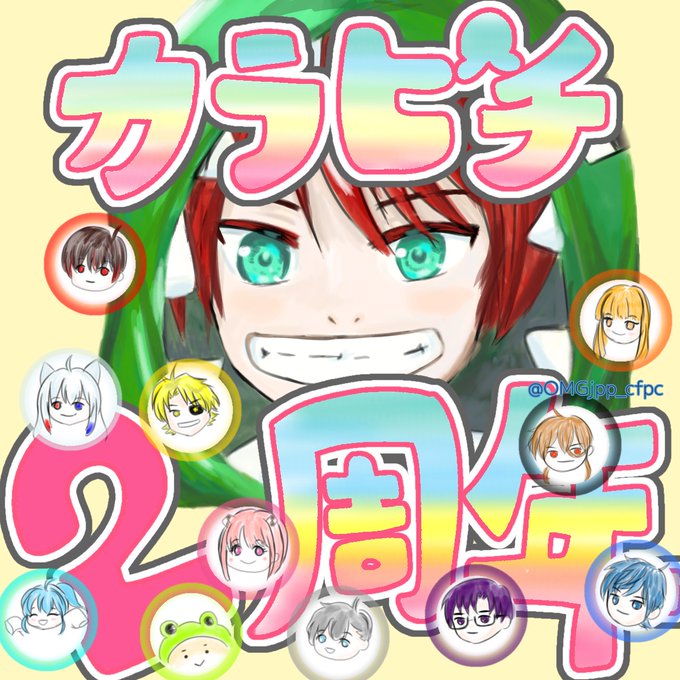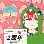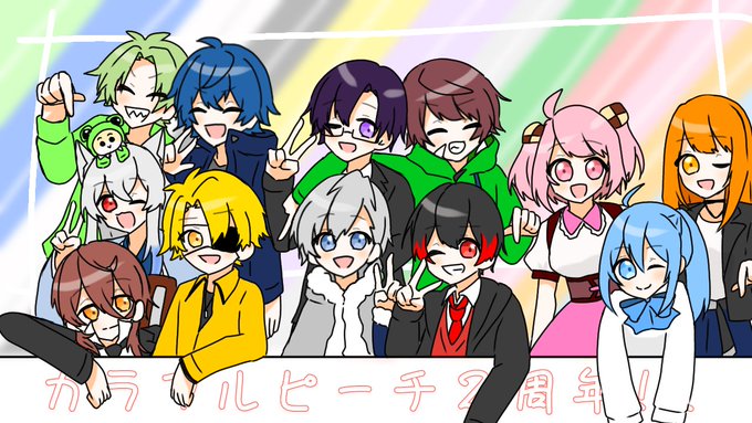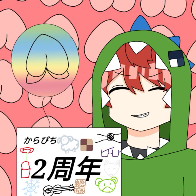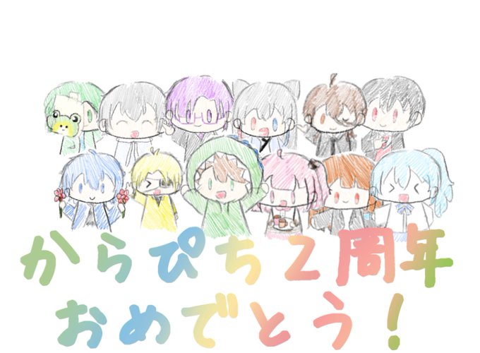 うわぁぁ!😭😭遅刻しました🙇🙇 からぴち2周年おめでとうございます🎉 いつまでもずっと応援してます🔥🎌 絵は遠目で見る事を願います😭🙏 ((下手くそなので💦 #からぴち2周年 #カラフルピーチ素材 #からぴち @YuaPyoon