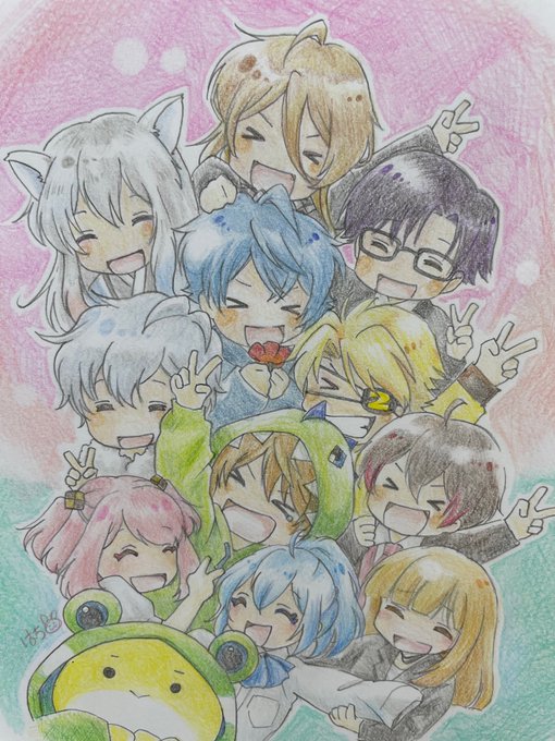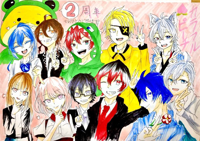 みんなでピース✌️ からぴち2周年記念!! おめでとうございます🎉🎉🎉 ※色々ミスがあったので投稿し直してます! #からぴち2周年 #からぴち #からぴち二周年記念 #イラスト #絵柄が好みっていう人にフォローされたい