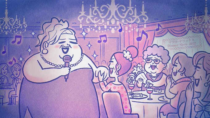 本日もご覧いただき、 ありがとうございました! マツコさん夢のディナーショー、 照明とか舞台演出とか セットリストとか妄想しちゃいます。。 次回は来週 9月16日よる8時から! 2時間SPです! お楽しみに! #かりそめイラストアルバム