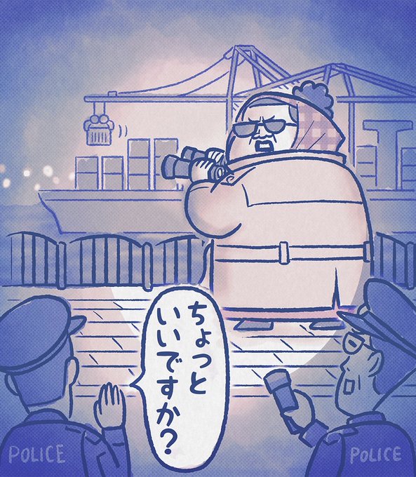 コンテナを荷下ろしする巨大クレーンを 埠頭まで見に行くぐらい好きなマツコさん。 私は自動車を運転するのも毎回緊張するので、 巨大クレーンを扱う資格を取り操縦する方々には尊敬しかありません。 (古文書ap) #かりそめイラストアルバム
