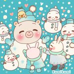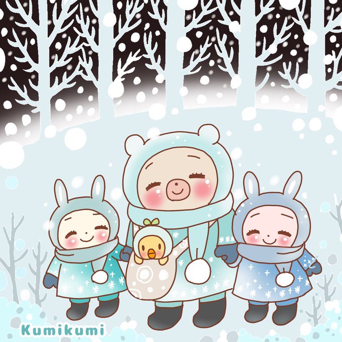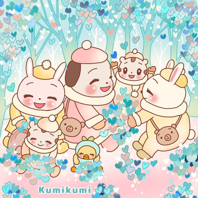こんにちは☺️寒いので雪遊びの絵・・・の雪をハート💙に描き変えたら何だか暖かい絵になりました☺️✨ みんなからハートのプレゼントです☺️💙🤍 #かわいい動物イラスト #ほっこりイラスト #イラスト