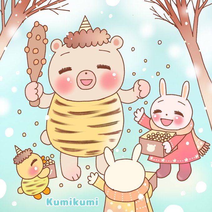 こんにちは☀ この子達も鬼さんになりました🐰🐰🐤 我が家では撒く豆は外には大豆、家の中にはさや付き落花生でした☺️ #かわいい動物イラスト #ほっこりいらすと #豆まき #節分が近いので鬼の画像を貼ってみる #イラスト好きな人と繋がりたい
