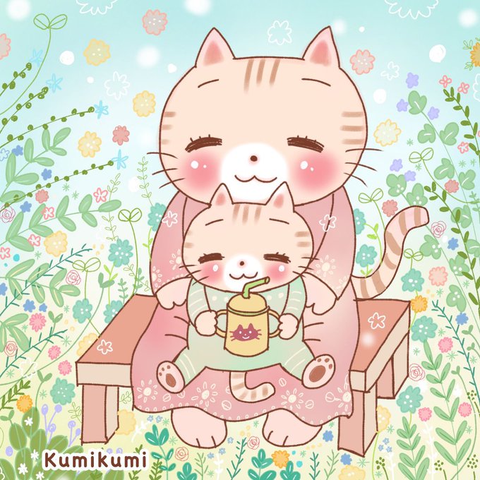 おはようございます☀️2月22日🐱猫の日ですね☺️なので久しぶりにふくちゃん親子を描きました🐱🐱🌼🌸春が待ち遠しい寒がりのふくちゃんです☺️ #猫の日 #猫イラスト #かわいい動物イラスト #にゃんにゃんにゃんの日 #猫好き #ほっこりイラスト #イラスト