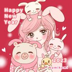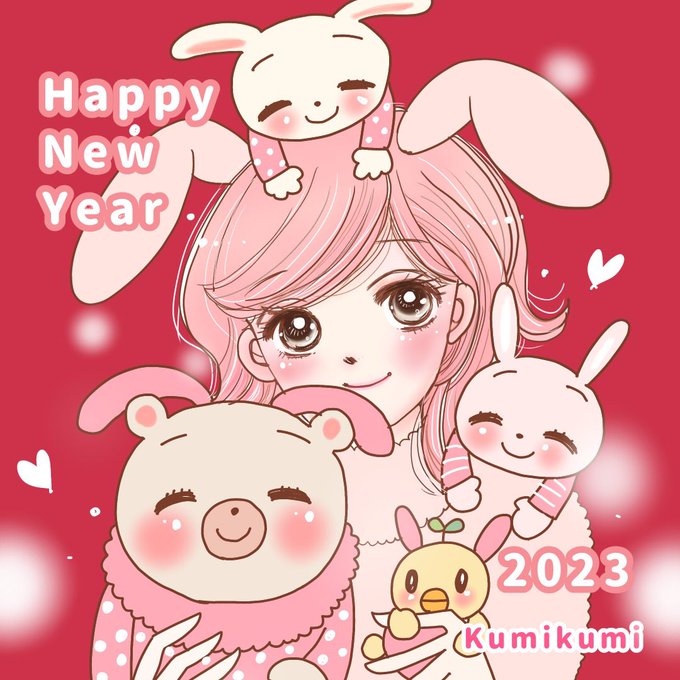 こんばんは☺️ 趣味を詰め込みすぎて、お正月に合わずボツにした年賀状イラストです🤭💦 描いてる本人は楽しかったです☺️🎶 #かわいい動物イラスト #女の子イラスト #うさみみ #卯年イラスト #年賀状イラスト2023 #イラスト