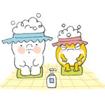 ゆっくりお風呂にはいって リラックスしてね #マシュマロおじさん #相棒チョコ #同居アオムシのクゥちゃん #キャラクター #イラスト #みんなで楽しむtwitter展覧会 #かわいい絵本 #イラスト好きな人と繋がりたい