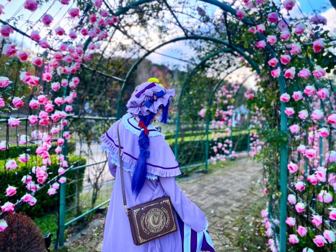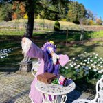 白玉楼に招かれたパチュリー とゆう気持ちで今日は日本庭園を お散歩して来たヮ(ㅎ.ㅎ )🌙💜✨ #Cosplay ⚠️ #がんばれパチュリーおばあちゃん #虹の郷 🌈 📸(@IsumiDamyon )📸 写真ありがとう、🍡🫧
