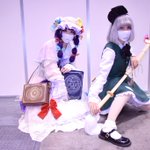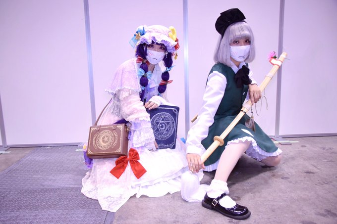 この写真、ファッション雑誌の ポージングでありそうで笑う( ー̀ωー́)🫧 📖´-(わたくし) ⚔️▶︎(@IsumiDamyon ) 📸▶︎(@remilia002 ) #例大祭20 #例大祭コスプレ ⚠️ #がんばれパチュリーおばあちゃん