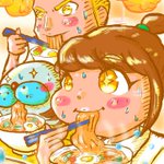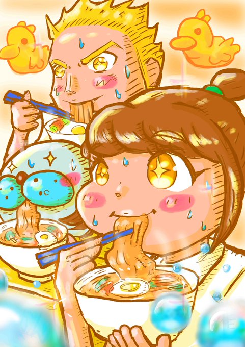 おはようございます♪ 犬丸達が作ったチキンラーメン、野菜いっぱい卵入りだぜい🐥 今日8月25日は即席ラーメン記念日(チキンラーメン誕生の日)。 んー、うまうまだぜい(*ノωノ) 汗を沢山かいて、元気ハツラツだ❣ がんばれ犬丸🐶 #イラスト #絵描きさんと繋がりたい #がんばれ犬丸