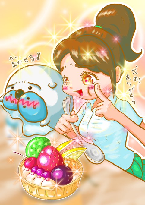 前回、冷蔵庫にあったユメのプッチンプリンを食べてしまった犬丸は、ユメにフルーツもりもり超豪華プリンをなけなしのお金でおごることになった(´;ω;`) これで仲直りだ犬丸🍀✨ がんばれ犬丸♪ #イラスト #絵描きさんと繫がりたい #がんばれ犬丸