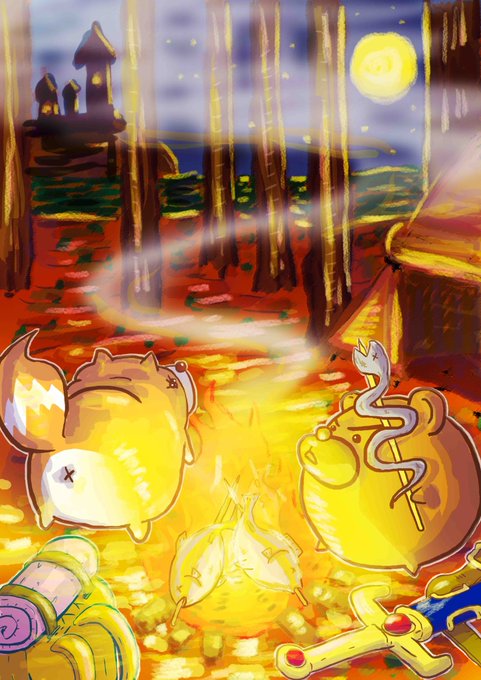 『小さな七匹の戦士達‐がんばれ犬丸外伝‐』 EP1 修行の旅から故郷へ戻る途中、寝床で食事してる、戦士わぐ丸と乗り物柴丸。 何か不吉な予感がする。。。何も起きなければ良いのだが。。。 次回へ続く。 #イラスト #絵描きさんと繋がりたい #がんばれ犬丸