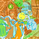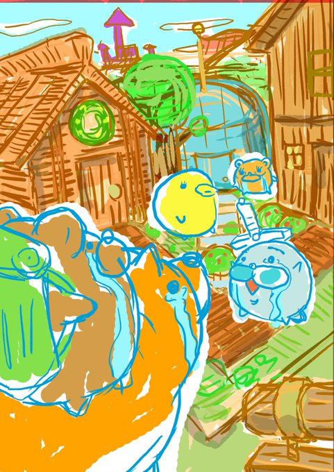EP2『小さな七匹の戦士達‐がんばれ犬丸外伝‐』 修行の旅から故郷へと帰ってきたわぐ丸と柴丸。 出迎えてくれてるのは犬丸達、、、と🐻💕。 のどかな村だぜ♪ これから何も起きなければ良いのだが。。。 次回へ続く。 #イラスト #絵描きさんと繋がりたい #がんばれ犬丸