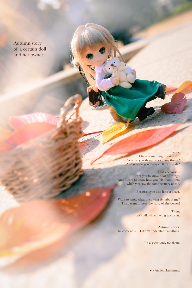 The story of autumn ...? ◾︎▫︎ 2人だけの秋のお話☕️ 🫖🍁 #うちのこかわいい #きままトランクbox #カメラ散歩 #ドールとオーナー #はなむら工房創作画廊