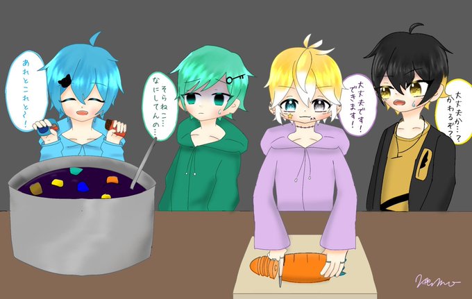 #きみゆめギャラリー #のっきのアトリエ #みてみてそらねこくん #ラメリぃらすと #かもめくらぶ もしお料理配信があったら、の図() わたわたカオスになりそうで可愛い(前回の公式枠でのお話一部参考にしましたw)