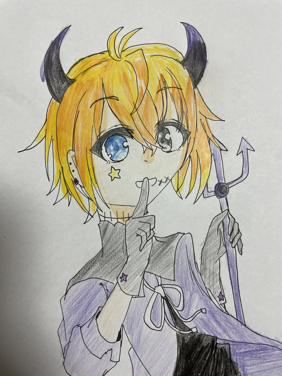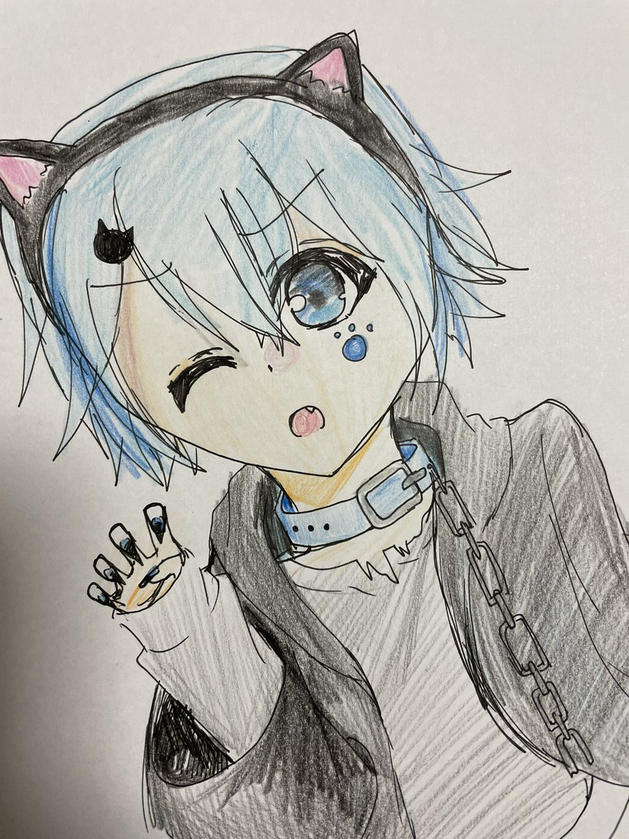 色鉛筆だからムラがすごい笑 ガラスペン届いたからペン入れはガラスペンでやって色塗りはその辺にあった色鉛筆 久しぶりのお絵描きだったからおてて疲れた #きみゆめギャラリー #のっきのアトリエ #みてみてそらねこくん #ラメリぃらすと #かもめくらぶ