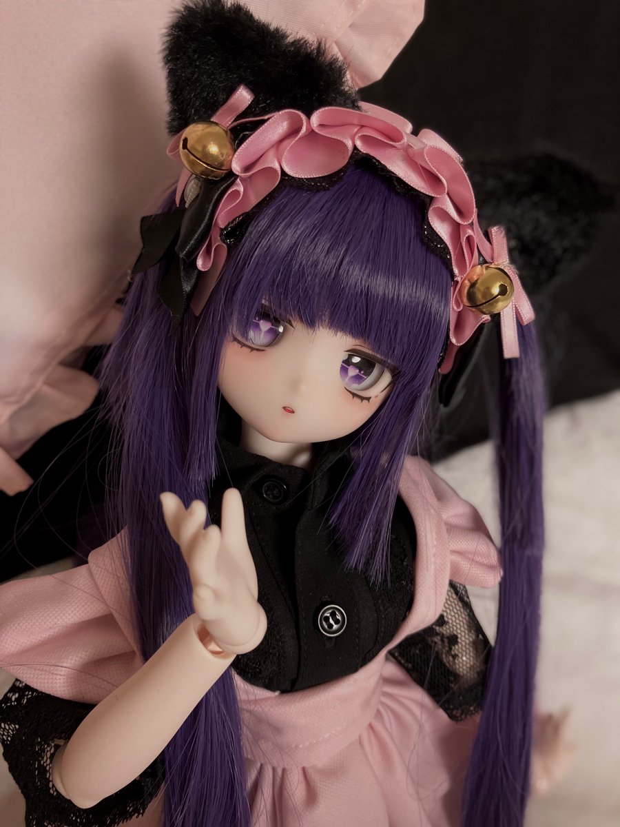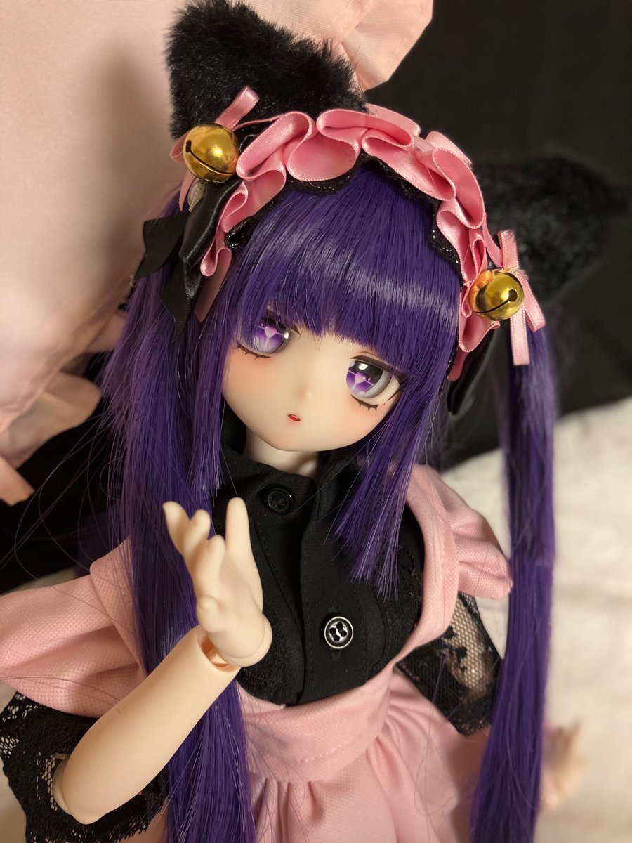 思い切ってうさ耳じゃなく猫耳にしました!🐈⬛🎀 お値段は1500円になります🍀 ̖́- オーダーされる方はDM又はリプを下さると幸いです✨ こちらもスカートとセットですとお得な価格でお譲り出来ます #MDDはいいぞ #ドールオーナーさんと繋がりたい #きゃめ屋さん