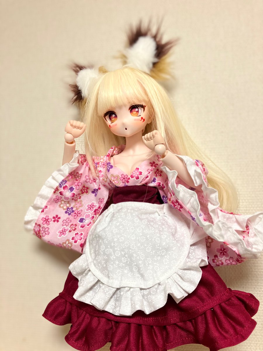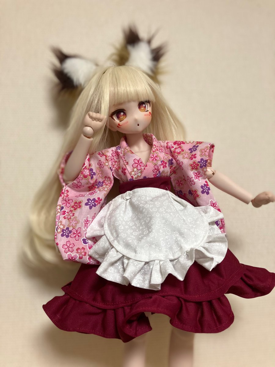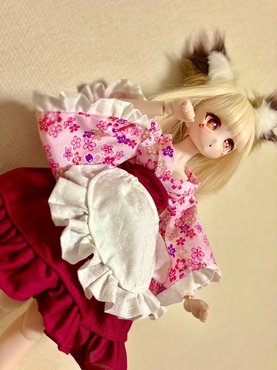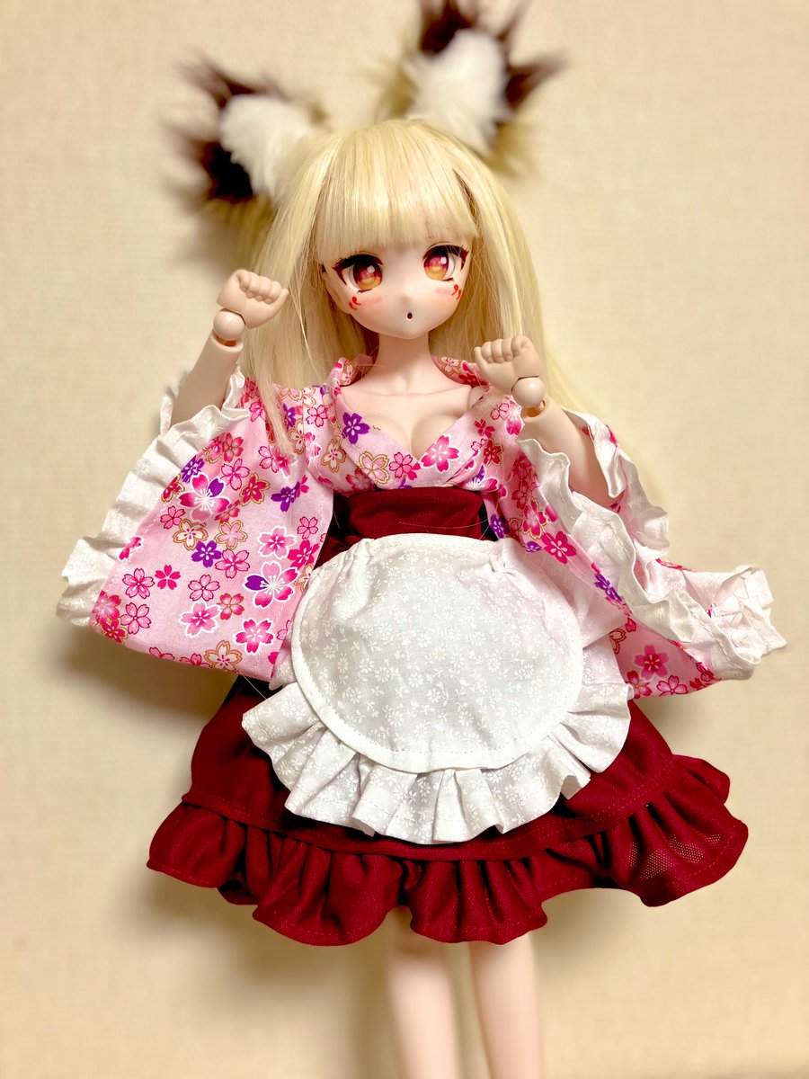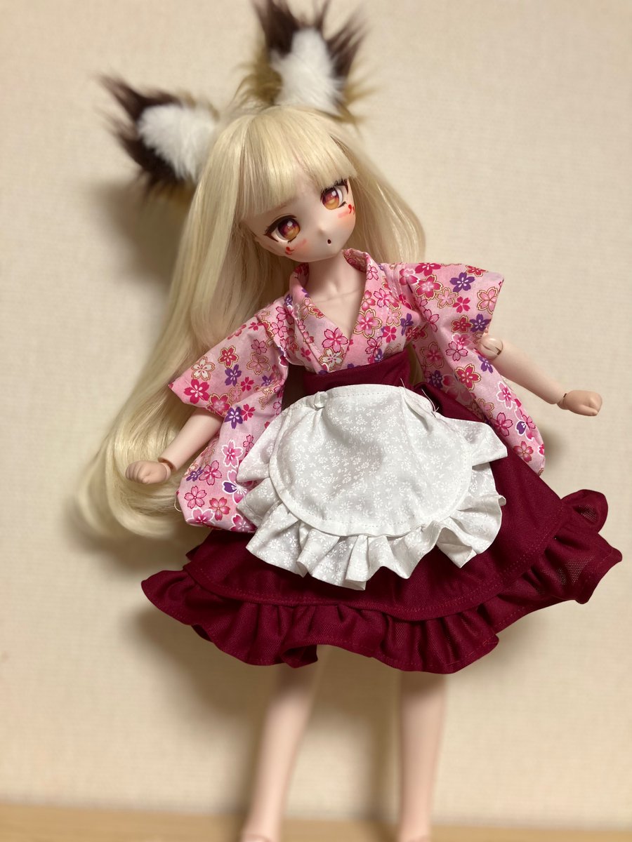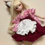 新作の和ロリメイドさんですっ! 6900円で浴衣➕紅ワンピ➕エプロンのセットで販売します✨ 浴衣のみでも着用できます!✨ オーダーしたい方がいればリプ又はDMください!🍀*゜ 袖の部分はフリルありなし変更できます #きゃめ屋さん #MDDはいいぞ #ドールオーナーさんと繋がりたい