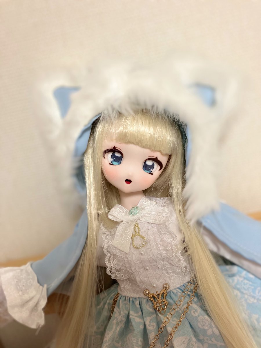 もふもふ猫耳ポンチョ作りました〜! こちら『一点物』になります 同じデザインの物は販売致しません🍀 早い者勝ちとなりますのでご希望の方はお早めにお声がけ下さい お値段は3500円になります💕 #きゃめ屋さん #MDDはいいぞ #ドールオーナーさんと繋がりたい