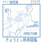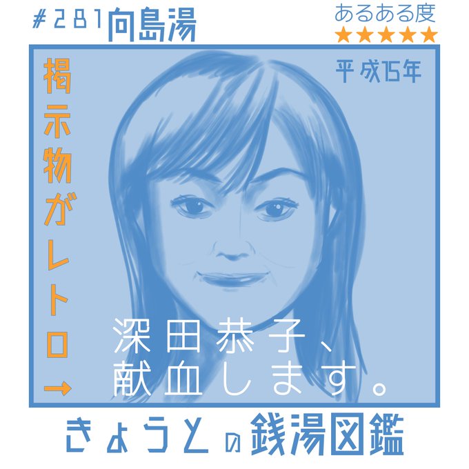 #きょうとの銭湯図鑑 #向島湯 施設がレトロというのもあるけど、店内の掲示物が古いものをずっと貼ってあるのも超あるある 20年で眉毛の描き方めちゃくちゃ変わってるなーと思います #銭湯 #銭湯好きな人と繋がりたい #あるある #イラスト