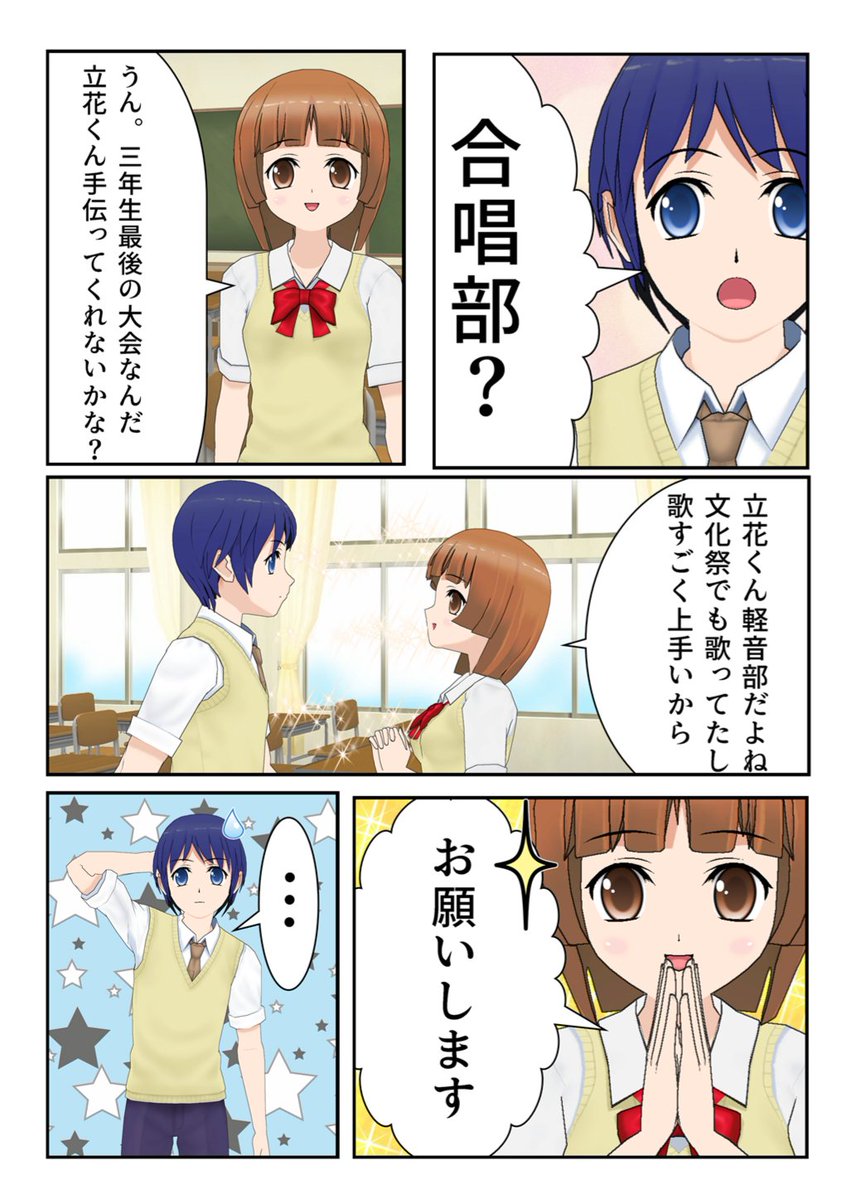 恋愛青春漫画「きらめけ青葉高校合唱部」の続きを作りました🎶 合唱部ヒロインの青春きゅんな話になっています💓 #一粒万倍日 の今日は恋愛漫画作って楽しんでます😊 #漫画 #マンガ #漫画が読めるハッシュタグ #合唱 #恋愛漫画 #きらめけ青葉高校合唱部