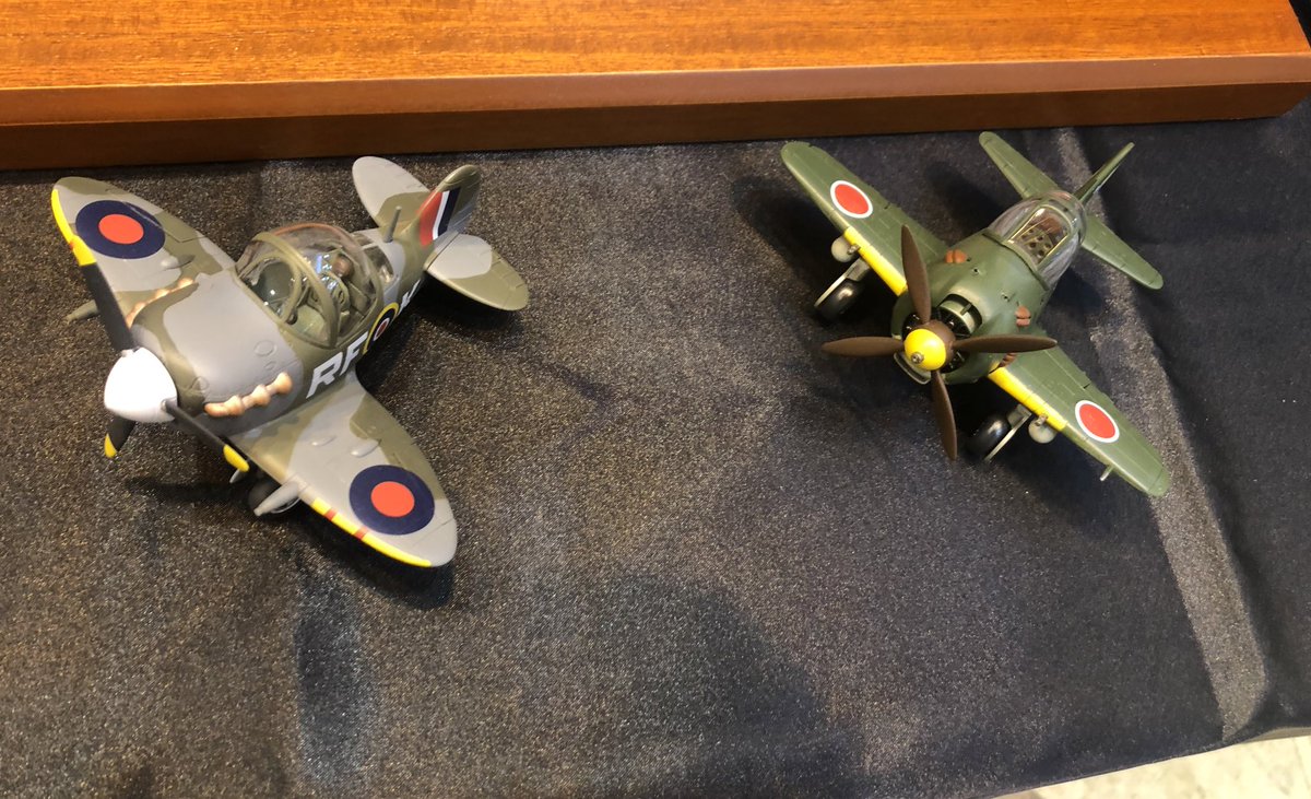#きらら山口合同展示会 から。棚から一掴み。いくつか展示しました。ハセガワ の雷電。タミヤのM3。アカデミーのラプター。タイガーモデルのスピットファイヤと疾風。全部素組ですね。素組でないと完成が遠のくというか^_^。仕事がブラックで有名で、特に今月は忙しい。過去作ばかり。#ガンプラジオ