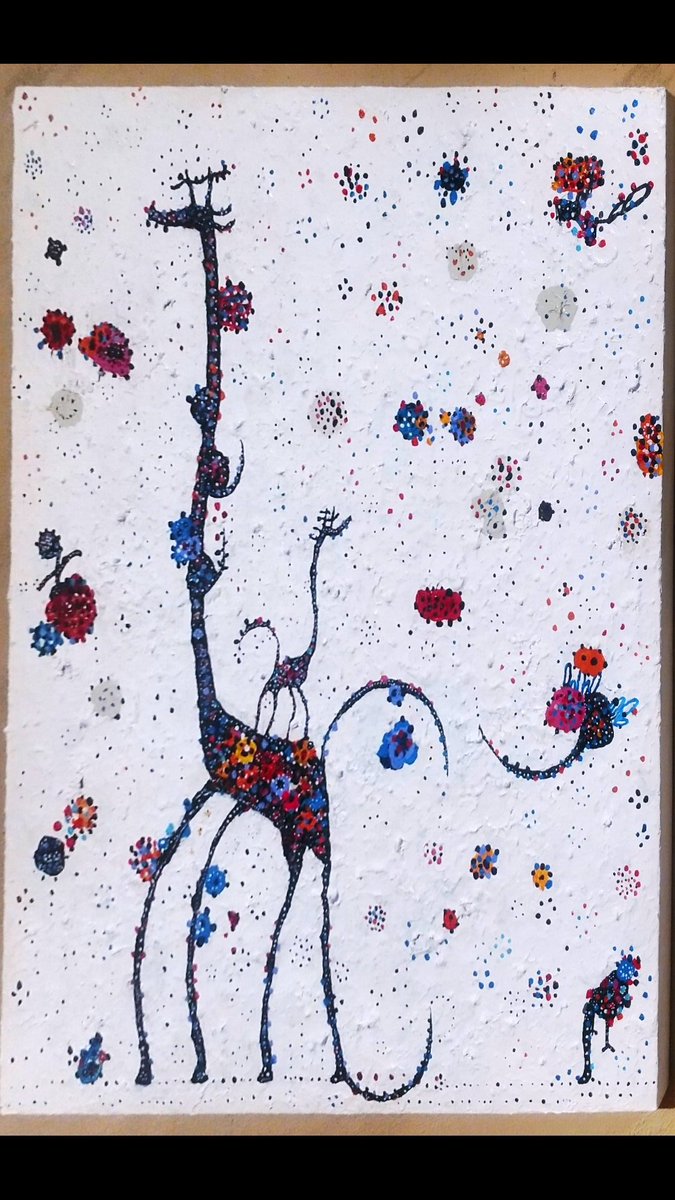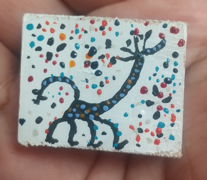 giraffe部分ディテールのマイクロブローチ✨メロディなnuanceにてcompleteですよ😃珈琲にてコーティング仕上げいつもの如くしましたので、モキュモキュピカピカなブローチなってますですよ☺️ #マイクロキャンバス #miniature #minimum #イラスト #creator #giraffe #exhibition #きりん #artwork #絵