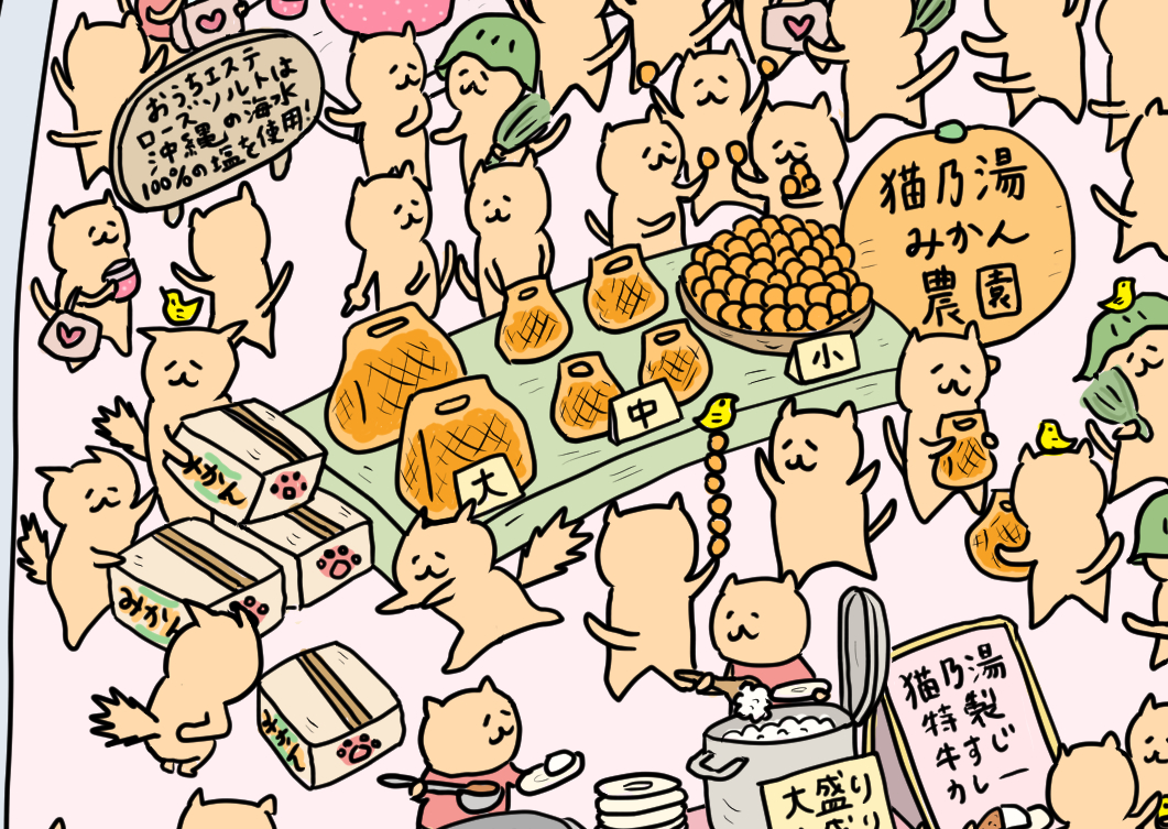 スーパー銭湯「猫乃湯」のみかん農園で採れたみかんコーナーにいる猫です👍 #イラスト #イラスト好きさんと繋がりたい #絵描きさんと繋がりたい #絵本 #ねこ #illustration #猫好きさんと繋がりたい #猫 #猫の居る暮らし #drawing #ぎっくり腰 #サウナ #サ活 #みかん #cat