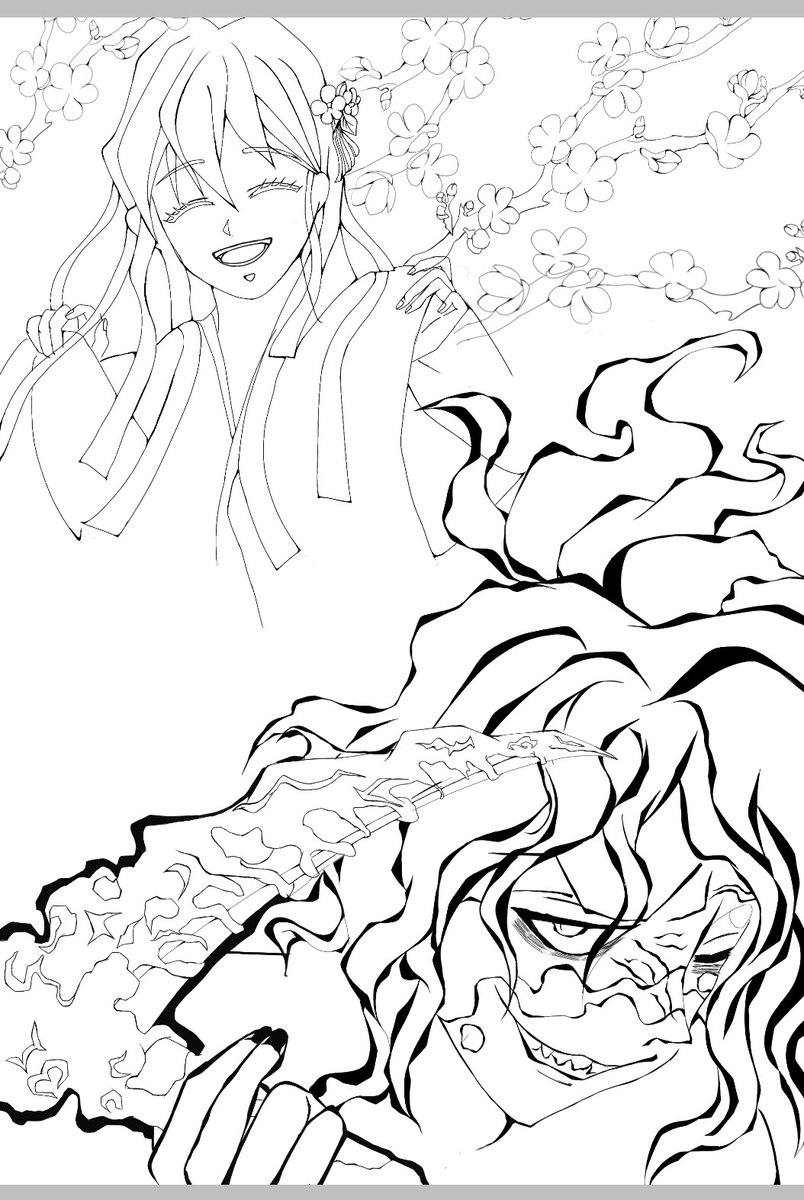 鬼滅6枚目のイラストは最推し、妓夫太郎を描きまーす! 無事完成出来るか物凄く緊張だけど…いつもの様にゆっくり探り探り…頑張ります💪 #鬼滅の刃 #妓夫太郎 #ぎゅうたろう #梅 #イラスト #線画 #守りたかったこの笑顔 #絵描きさんと繋がたい