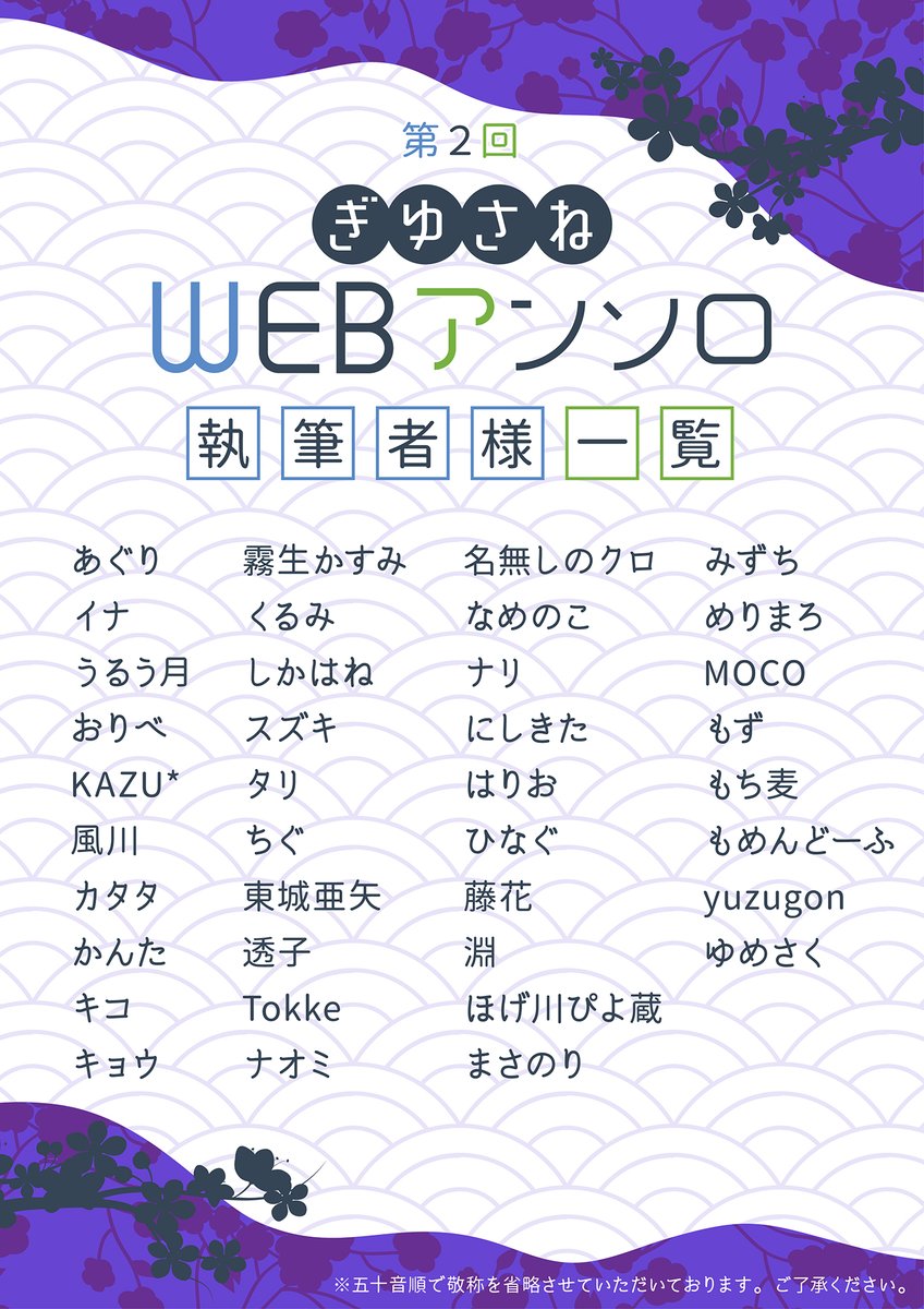 【第2回ぎゆさねWebアンソロラリー】 執筆者総勢38名! ぎゆさねWebアンソロ公開いたしました! ↓ pixiv.net/artworks/10951… テーマ「夏」 夏を楽しむぎゆさねをぜひご覧ください✨ #ぎゆさねWebアンソロラリー2