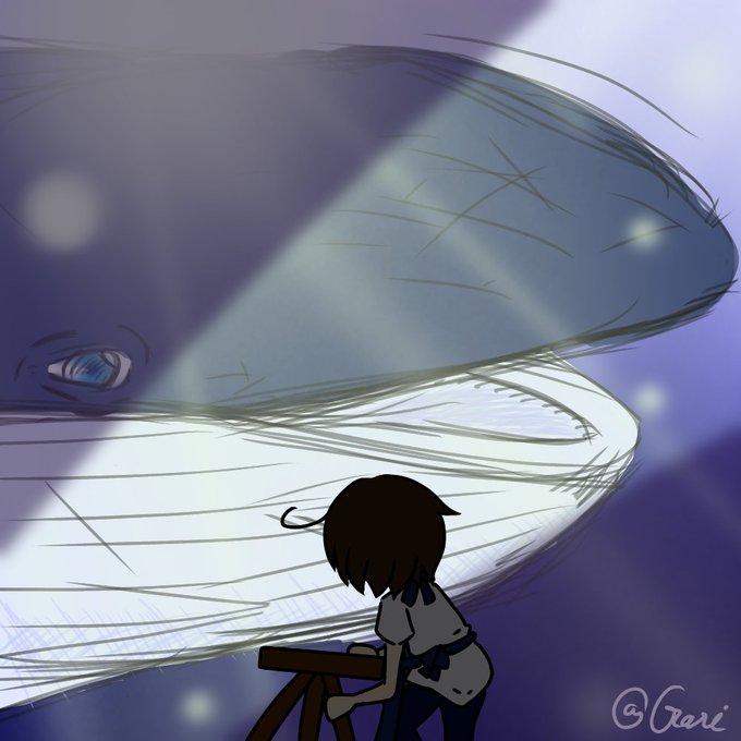 #オリジナルイラスト #デジタルイラスト #イラスト #絵描き #くじら #クジラ #鯨 #くじらの絵描きシリーズ #絵描きさんと仲良くなりたい #デジタル #ibisPaintX #イラストレーター @がり作 くじらの絵描きシリーズ3 「おや、準備中」