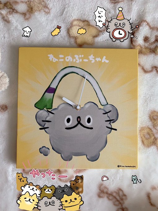 #ねこのぶーちゃん もぐもぐオンラインくじのサンプルをお借りしました〻ʘᴥʘ〻 こちらはS賞のファブリック時計🕰キャンバス地の風合いがいい感じです! kujibikido.com/lp/nekonobooch… #くじ引き堂