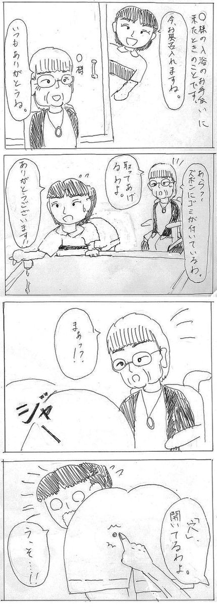 『〇〇だと思ったら・・・』 -グッドタイムリビング 4コマ漫画シリーズ- 介護スタッフの榎本が、ご入居者との日常を4コマ漫画でお届け! gtl-daiwa.co.jp/guesthouse/gtl… #入浴介助 #お尻 #くすっと笑える #漫画が読めるハッシュタグ #GTL4コマ漫画 #有料老人ホーム #グッドタイムリビング千葉みなと駅前通