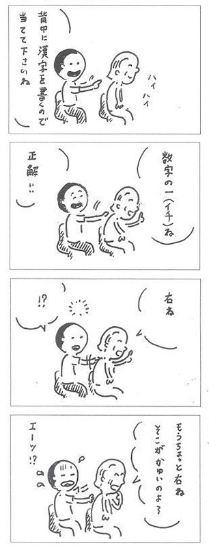 『イイ感じ♪』 -グッドタイムリビング 4コマ漫画シリーズ- 介護スタッフの中村が、ご入居者との日常を4コマ漫画でお届け! gtl-daiwa.co.jp/guesthouse/gtl… #背中文字当てゲーム #かゆい #くすっと笑える #漫画が読めるハッシュタグ #GTL4コマ漫画 #有料老人ホーム #グッドタイムリビング千葉みなと駅前通