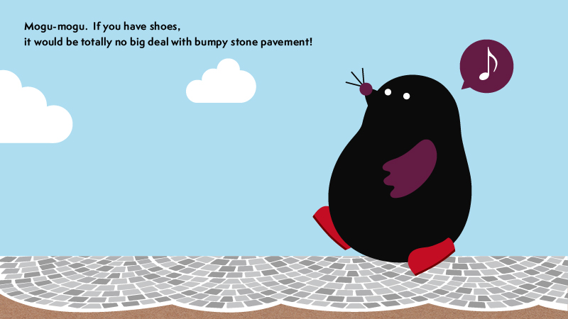 モグモグ!くつがあれば石だたみのデコボコもへっちゃら! #くつやの日 #モグハル #Moguharu #もぐら #キャラクター #character #イラスト好きな人と繋がりたい #イラスト #illustration #デザイン #mascots