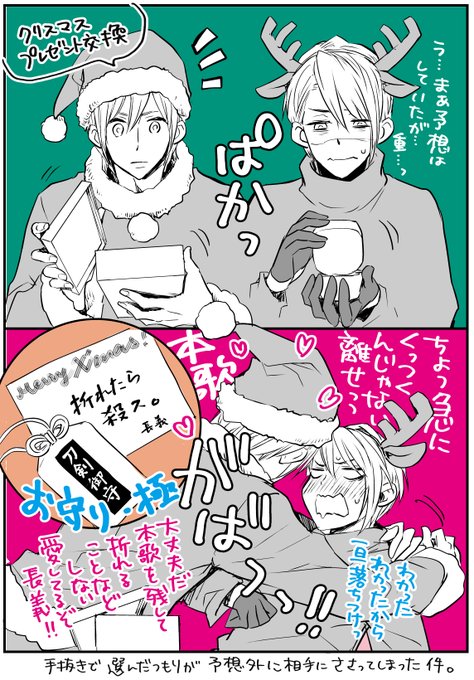#くにちょぎ #くにちょぎワンドロぷち 過去のお題「記念日」お借りしました! クリスマスも一応記念日かな…ってw 写しは本歌へのプレゼントとなったらガチのもの一択だと思う(重め)。 本歌は基本何あげても喜ばれちゃうんだけどやはりこちらもネタに見せかけてガチめに選んでくると思う(厄介)