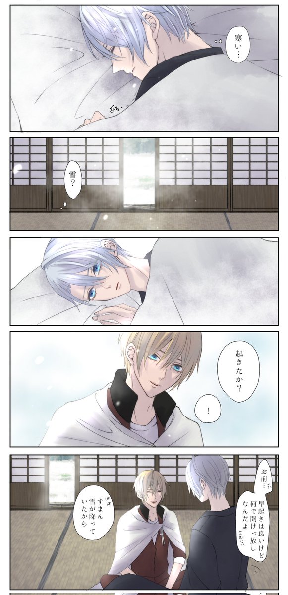 #くにちょぎWeek迎春 お題「雪うさぎ」で描かせていただきました! 周囲に「えっまだ付き合ってなかったの…?」と思われてた二振りが年末にこっそり進展したイメージです…!来年もハッピーくにちょぎ!!🌄