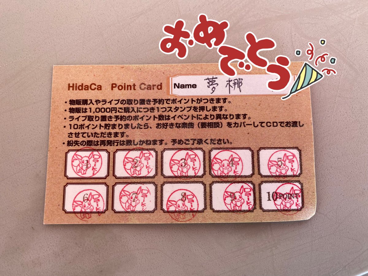 昨年より開始したポイントカードサービス「HidaCa」。 ついにポイントをすべて貯めた方が現れました🎊 「夢梛」さんです❗️ 夢梛さんには、特典として「楽曲のリクエスト権」を贈呈します✨ おめでとうございます❗️ そしていつも応援ありがとう‼️😭 #くまフェス2021