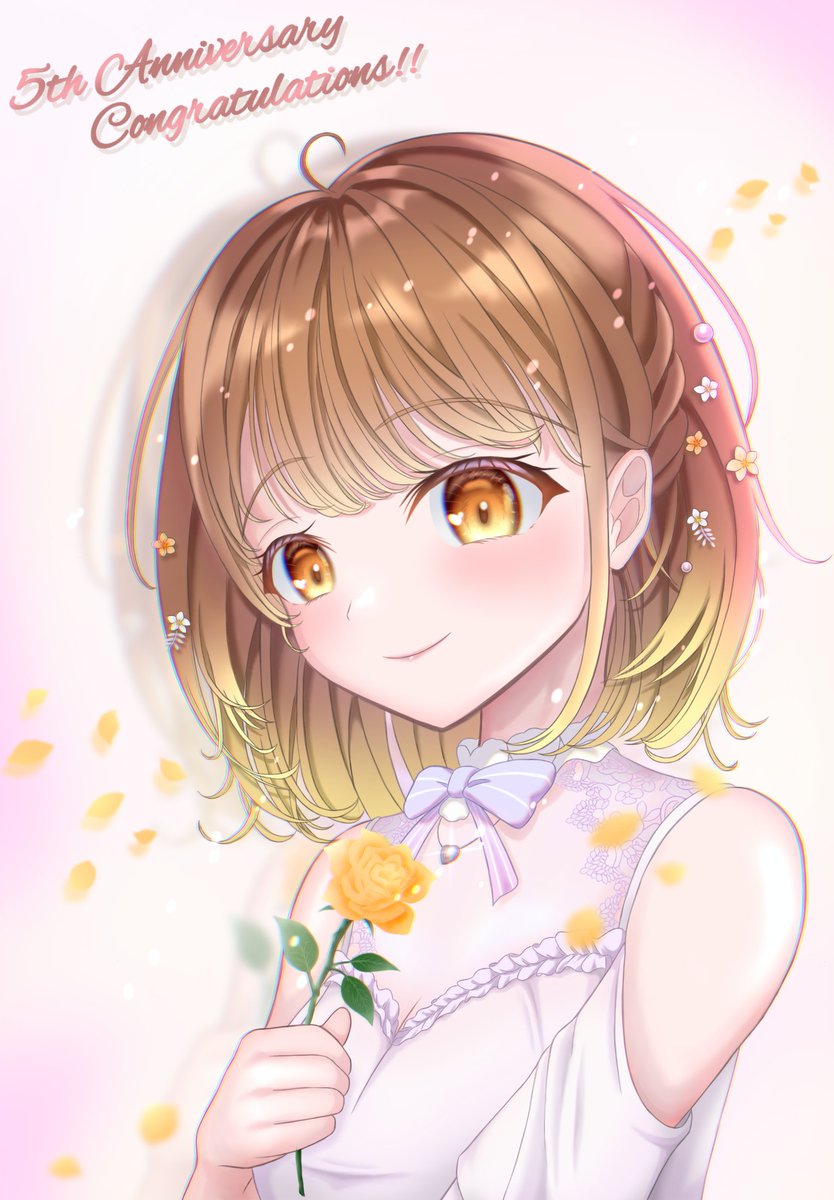 クララさんデビュー5周年おめでとうございます♪ オレンジの薔薇を持たせてみました。 花言葉は「幸多かれ」。6周年目もクララさんに幸多からんことを祈っております(*^^*) #くららのたぐ #clara_art