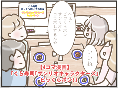 【4コマ漫画】 「くら寿司「サンリオキャラクターズ」 ビッくらポン!」 『鈴木さんちの4コマ漫画』 ブログ更新kimamas.com/post-6687/ #くら寿司 #ビッくらポン #サンリオ #サンリオキャラクターズ #漫画が読めるハッシュタグ #4コマ漫画 #漫画 #日常漫画 #イラスト #illustration